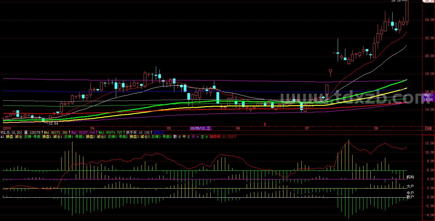 【主力多头主导】主图/副图/选股指标,形成典型趋势启动+主力资金流入共振模型,是较为可靠买入时机短期趋势判断:操盘线系统5日均线作为短期操盘线,是判断股价短期强弱的重要指标。当股价站稳5日均线上方时,表明市场短期由多头力量主导,这是趋势交易...