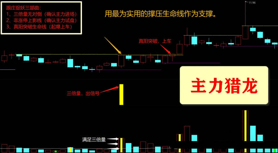 【三线擒妖】主图/副图/选股指标,涨停突破+趋势共振筛选强势股,优化幅图和选股指标信号!三线擒妖主图 优化幅图和选股指标信号指标说明:本指标通过涨停突破+趋势共振筛选强势股,适合短线交易者。建议配合其他技术分析(如支撑压力、板块热度)使用,...